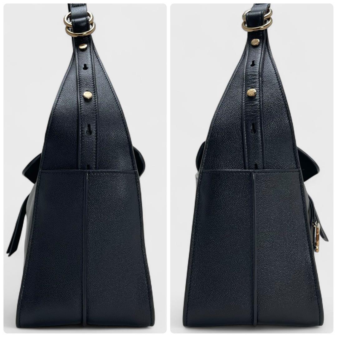 トッズのTタイムレス ショルダーバッグのご紹介です。 以前テレビドラマで使用され話題になったモデルです。 ゴールドの「T」金具と、シボ加工が施された 上質なレザーとのコンビネーションが美しく、 シンプルながらも圧倒的な存在感を放ちます。 実物は写真以上に高級感があり、 手に取った瞬間に上質さを実感していただけるはずです。 高級レザーならではの滑らかさと品格ある佇まいは、 まさに大人の女性にふさわしい逸品。 31㎝幅のショルダーバッグ仕様ですので、 収納力と見た目のバランスを兼ね備えており、 秋冬の装いを格上げするバッグとしてもおすすめです。 人気の黒色かつ状態の良いお品は流通数も少なく希少です。 必ずご満足いただけると思います(^^) 返品対応について 偽物だった場合全額返金します。 詳しくはプロフィール欄をご覧下さい。 購入元 大手ブランドショップの鑑定士により 真贋鑑定済みの【確実正規品】です。 商品状態 《状態》SA S 未使用品 SA 未使用品に近い AA 中古品として良い A 中古品としてまあまあ良い B 中古品として普通 C 中古品として悪いがまだ使える ◇わずかなスレ、傷、毛羽立ちなど有り。(写真参照) その他目立つ傷や汚れは無く中古品として 美しい状態を保っております。 ほとんど使用感が無く極上のコンディションです。 ※コンディションについては主観になります。 最終的には写真を見てお客様ご自身で判断をお願いします。 ※あくまで一度人の手に渡ったものですので 流通過程で生じる軽微なスレ、傷、汚れ等は有るものとお考え下さい。 サイズ 縦 : 約 21.5 cm 横 : 約 31 cm マチ : 約 15 cm ショルダー長さ: 65~73cm (調節可能) 総重量 : 約 1,175g ※各寸法は最大部の寸法を測定。 仕様 T タイムレス TIMELESS ショルダーバッグ T金具 レディース 鞄 かばん ゴールド金具 オールレザー イタリア製 2022年春夏 参考定価:281,600円 ブランド TOD'S(トッズ) カラー 黒/ブラック 金/ゴールド 素材 レザー(本革)他 型番・シリアル XBWTSBY02Z0QMKB999 付属品 保存袋 管理番号 2510013 | |||