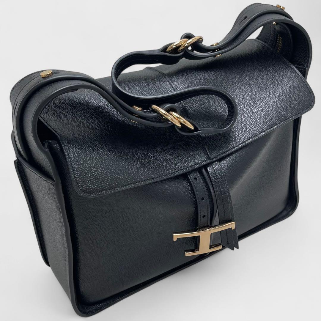 【廃盤品/未使用級】TOD'S トッズ Tタイムレス レザーショルダー バッグ 黒 袋付き ゴールド金具 イタリア製 2022年春夏 レディース 鞄 | |||