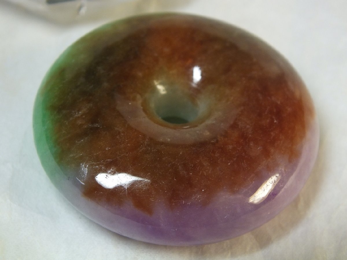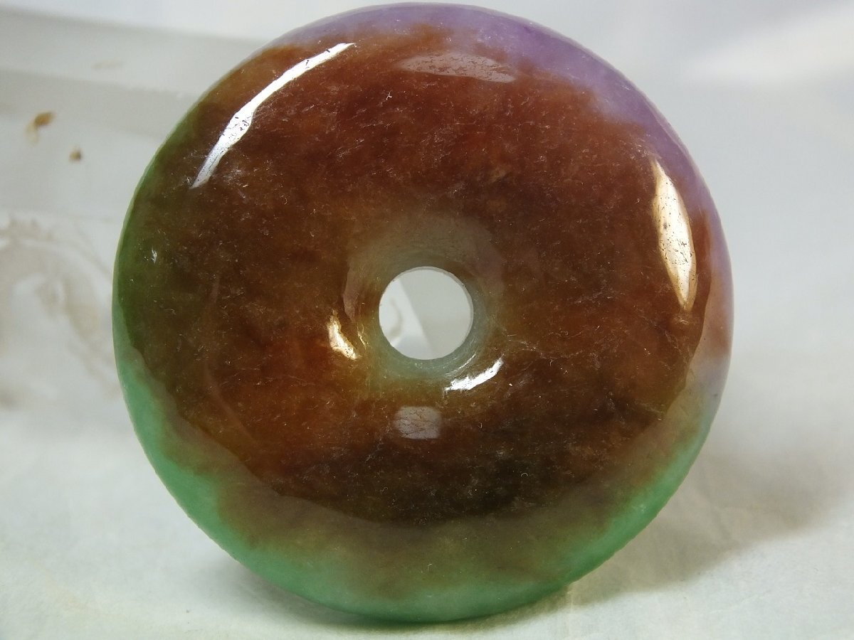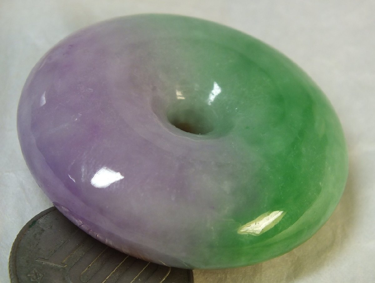 | ▲商品説明▲ | サイズ:直径43×厚13mm 重さ:48.8g 緑色が綺麗なミャンマー翡翠。仄かにラベンダー色も混ざった珍品です。中央に直径約6mmの貫通穴が有ります。石コレクションやアクセ作り等に。 ☆商品につきましては注意を払った検品を行っておりますが、稀に石の表面にクラック状の筋や凹みが見受けられる場合が御座います。それは石本来の石紋で傷ではありません(割れが生じ易いヒビではありません)。返品の対象にはなりませんのでその旨御了承の上、ご検討下さい。 |