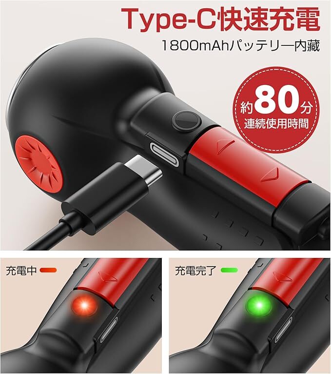• 【USB Type-C充電式・1800mAh大容量バッテリー】 この電動ドライバーはUSB Type-C充電式で、バッテリー交換不要で繰り返し充電可能です。1800mAhの大容量バッテリーを搭載し、約100分でフル充電が完了。充電後は最大80分間の連続使用が可能で、約300本以上のネジを締められることが実測で確認されています(無負荷状態)。従来の900mAhバッテリーと比べて容量が2倍以上にアップし、組み立て途中の電池切れの心配がなく、作業効率が大幅に向上します。充電時は5Vのアダプターをご使用ください。