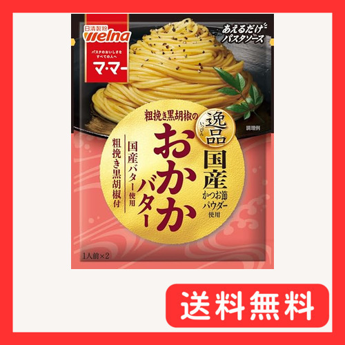 「マ・マー あえるだけパスタソース 逸品 粗挽き黒胡椒のおかかバター 46.8g ×5袋」▼4903310185282▼(商品説明)「マ・マー あえるだけパスタソース 逸品 粗挽き黒胡椒のおかかバター 46.8g ×5袋」▼4903310000000▼(商品説明)逸品シリーズ-/セット/-・Style:逸品シリーズFlavorName:逸品おかかバターSize:セット・1人前(23.4g)当たり :エネルギー125kcal、たんぱく質2.2g、脂質12.1g、炭水化物1.9g、食塩相当量2.3g商品紹介 国産鰹節パウダーを使用し、鰹節の風味が香ばしく口の中で広がります。 原材料・成分 パスタソース植物油脂、乳等を主要原料とする食品、食塩、バター、しょうゆ、かつおぶし粉末、チーズ、砂糖、しょうゆペースト、バター風調味料、オイスターソース/調味料(アミノ酸等)、増粘多糖類、リン酸塩(K、Na)、香料、着色料(カラメル)、乳化剤、カゼインNa、(一部に小麦・乳成分・大豆を含む) トッピング黒こしょう