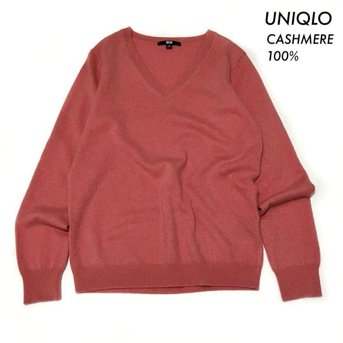 UNIQLO ユニクロ★カシミヤ100% 長袖ニット セーター Vネック ピンク Mサイズ レディース
