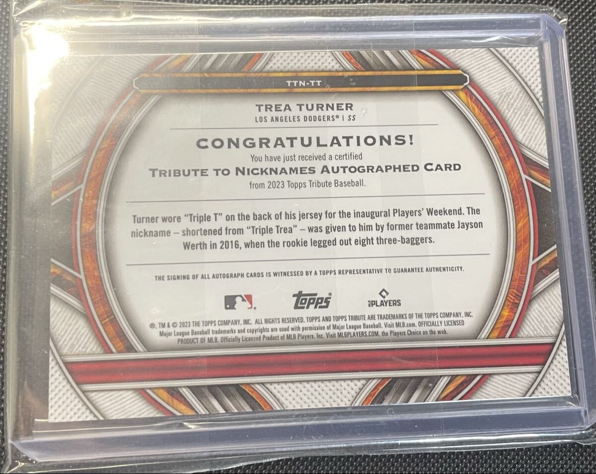 2023 Topps tribute baseball Autograph Dodgers ドジャース Trea Turner トレイターナー 直筆サイン 17/25 triple T 現フィリーズ