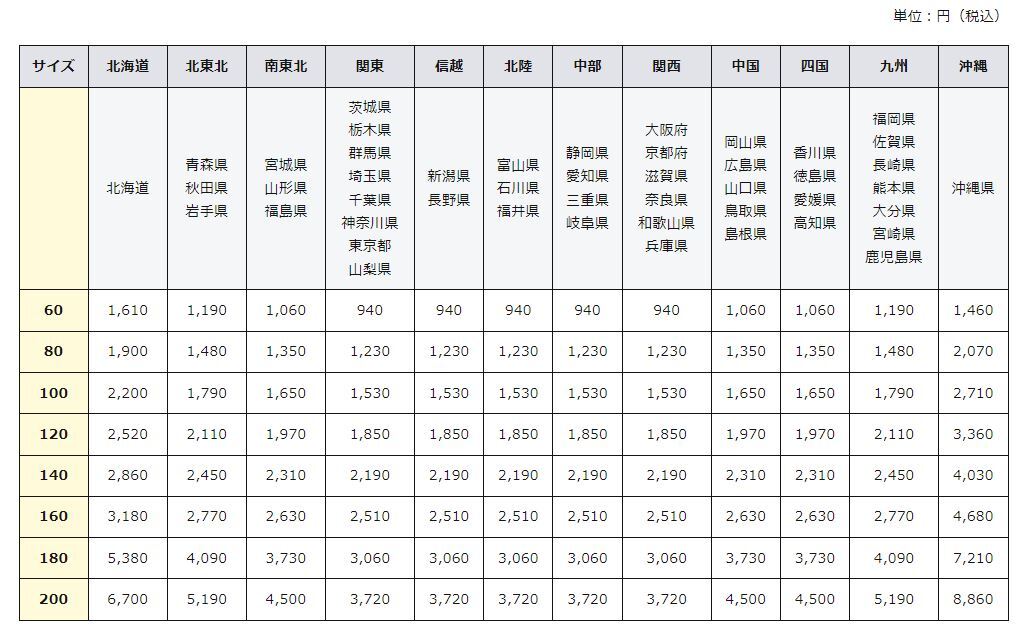 请参考商品网页上的说明,若无说明,一般普通3KG左右的普通件700日元左右,超大件2000日元至1万日元不等。下单前有疑问的请咨询客服。