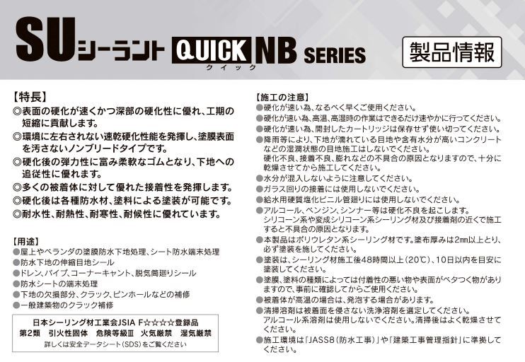 ■SUシーラントNBはポリウレタン系 速乾性防水下地処理用 シーリング材です