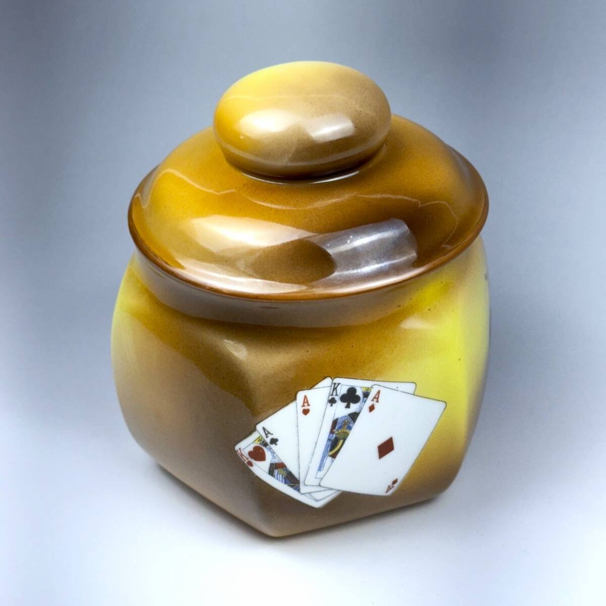 オールドノリタケのトランプの絵が描かれたヒュミドール(葉巻入)です。