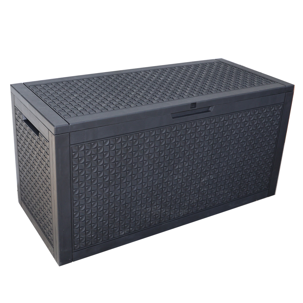 【ブラック 380L 123*54.5*62cm 油圧シリンダー付き 】ダイヤモンド調 戸外収納庫 収納ボックス 置き配 ゴミ箱 小型 屋外 ストッカー