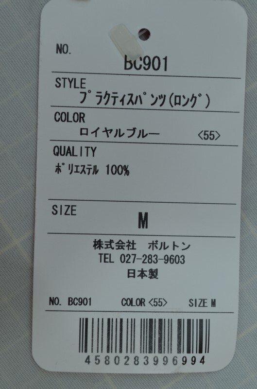 ★ボルトン★プラクティスパンツ(ロング) BC901 【カラー】 ロイヤルブルー 【サイズ】 M 胴囲75-81cm 股下19.5cm 【素材】ポリエステル100% | |