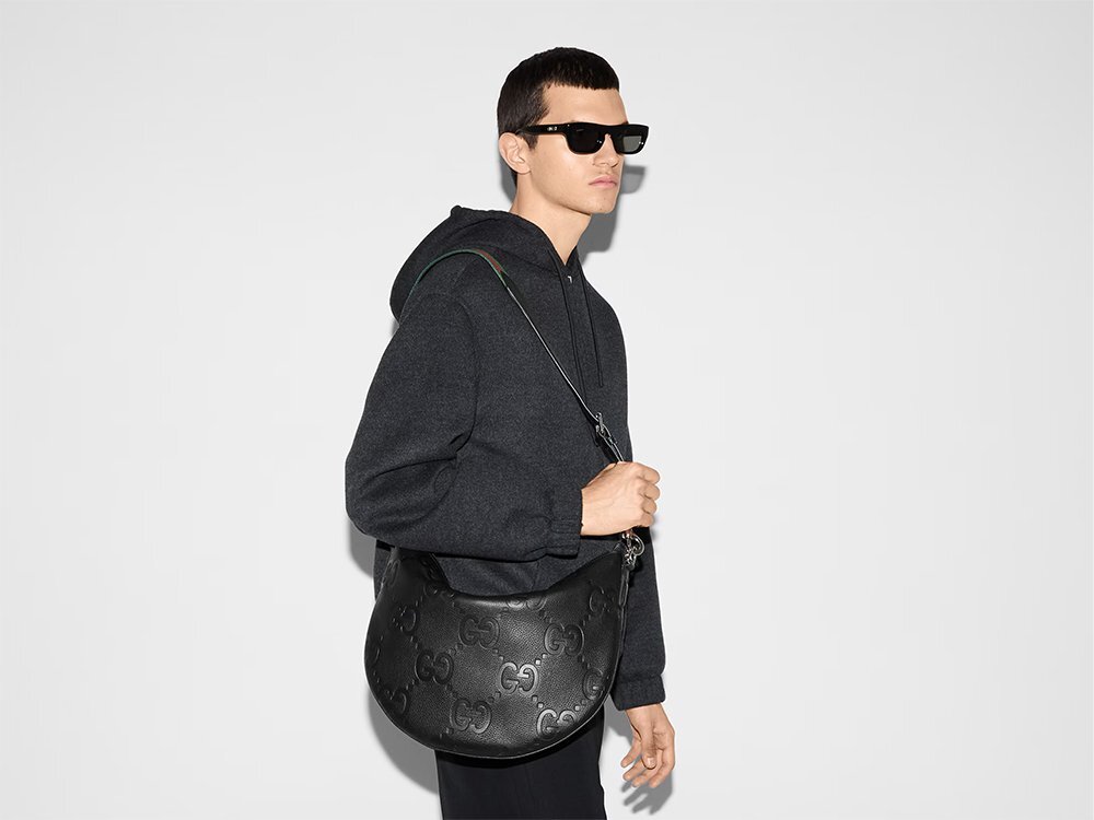 伝統に裏打ちされたブランドの世界観を受け継ぎながら、コンテンポラリーな美学を表現する"グッチ B"シリーズより、1950年代のアーカイブからのインスピレーションを着想手がける2025年最新のミディアム ショルダーバッグ「801887 AAEGD 1042」です。その名の由来であるアーカイブデザインをボディ全体にドレープを描くリラックス感のあるシルエットに再解釈した一品で、ソフトなシボ感のあるブラックの象徴的なジャンボ GGレザーを使用しています。ショルダーストラップは長さ調節が可能でDリングで取り外しも可能です。
