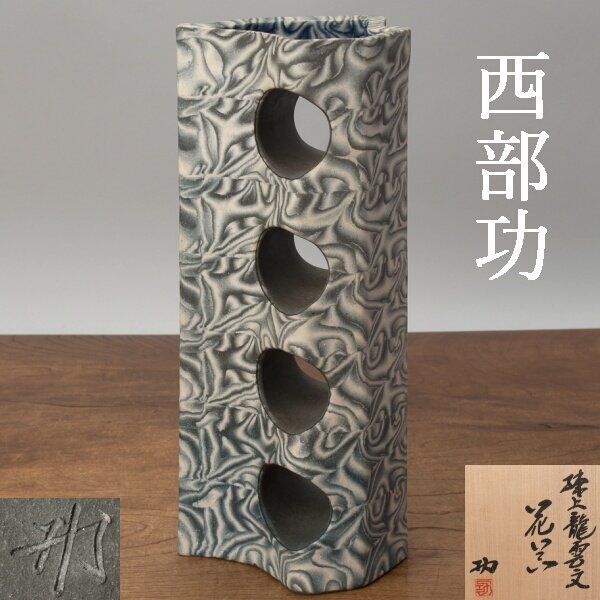 | 西部功の練上龍雲文花器。共箱有。真作保証。 サイズは、最大幅約12cm、高さ約27.5cm。 傷・直しありません。 状態・詳細は、画像でご確認お願いいたします。 |