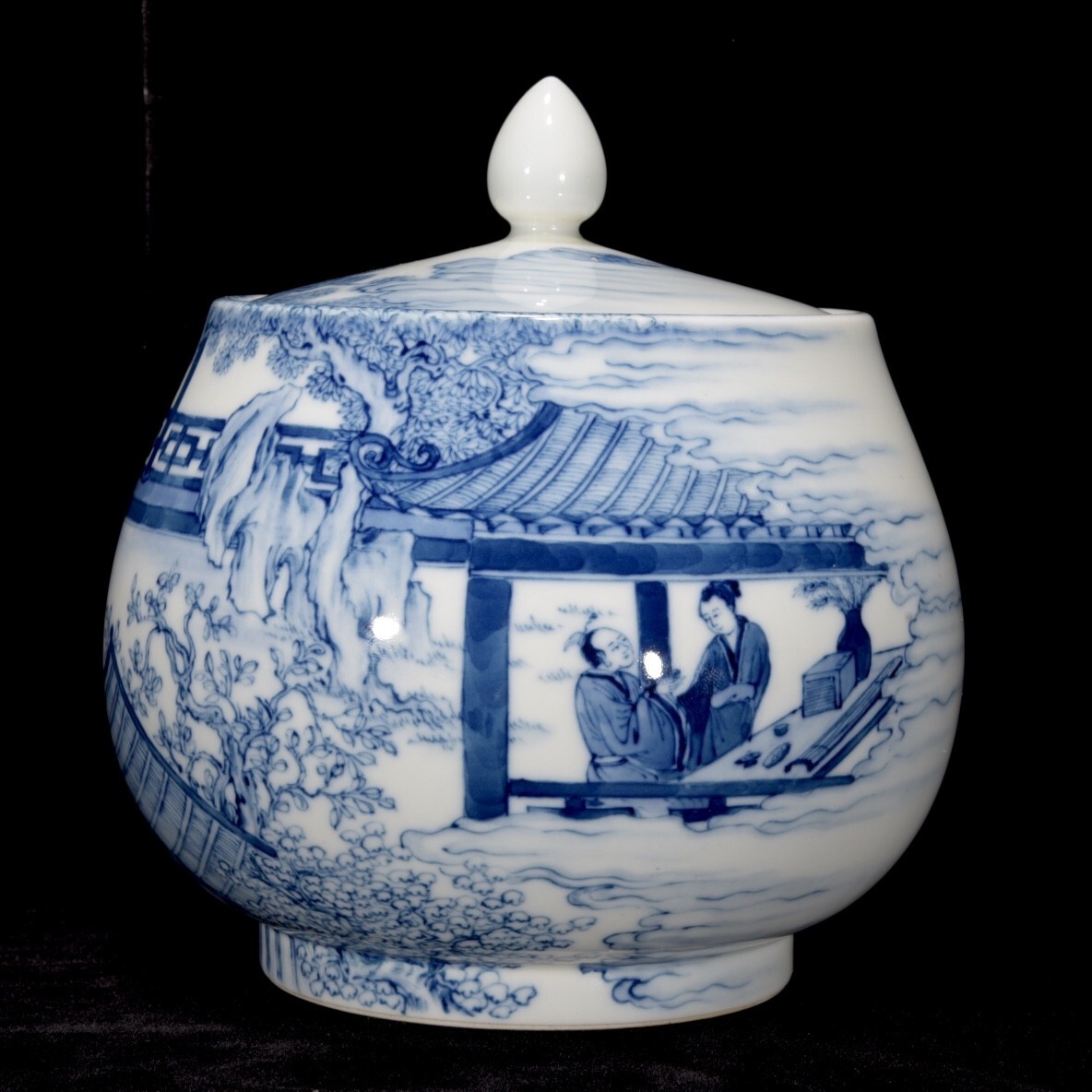 【永】清時代 大清乾隆年製 青花 人物故事紋罐 古陶磁器 陶芸 皿 中国陶瓷器 唐瓷 置物擺件 古美術品 古賞物 収集 旧家蔵出 中国唐物 A842