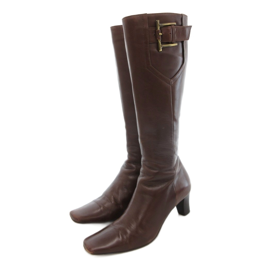 ア・テストーニ a.testoni ロングブーツ ハイヒール レザー 36.5 茶 ブラウン /AE レディース