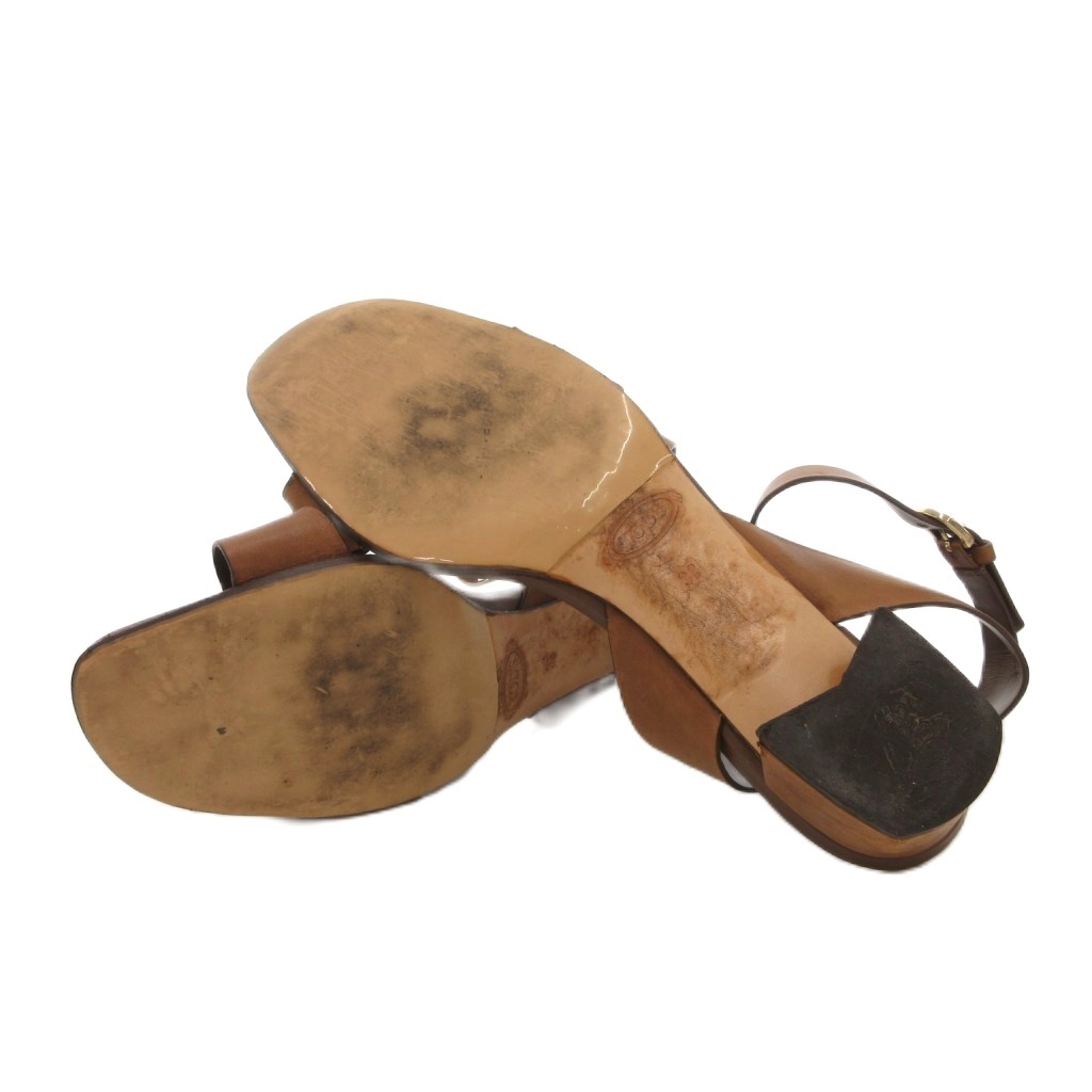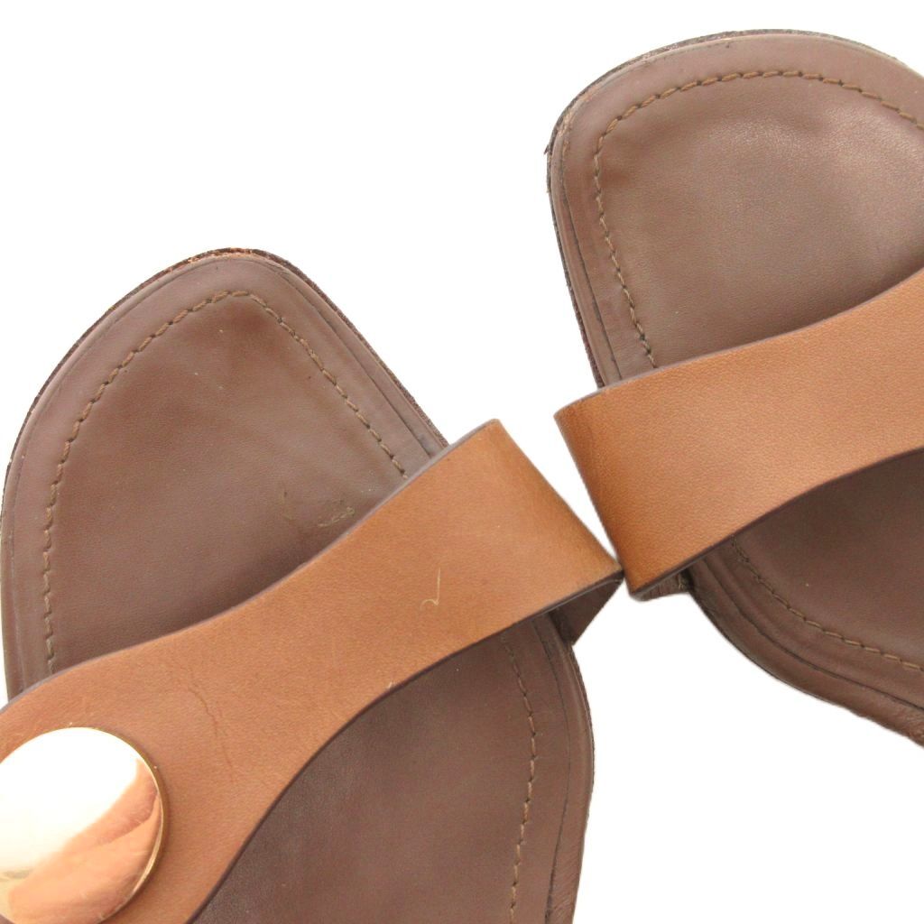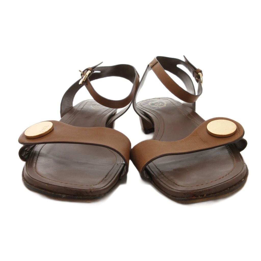 トッズ TOD'S サンダル レザー 金ボタン 38 茶 ブラウン ローヒール ゴールドカラー 金色 /FF レディース