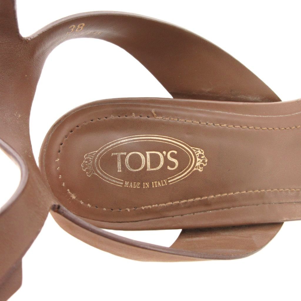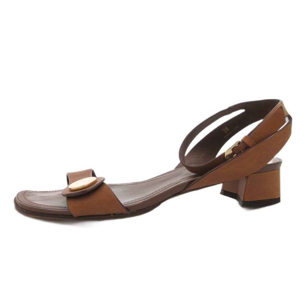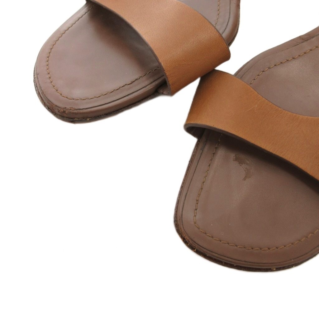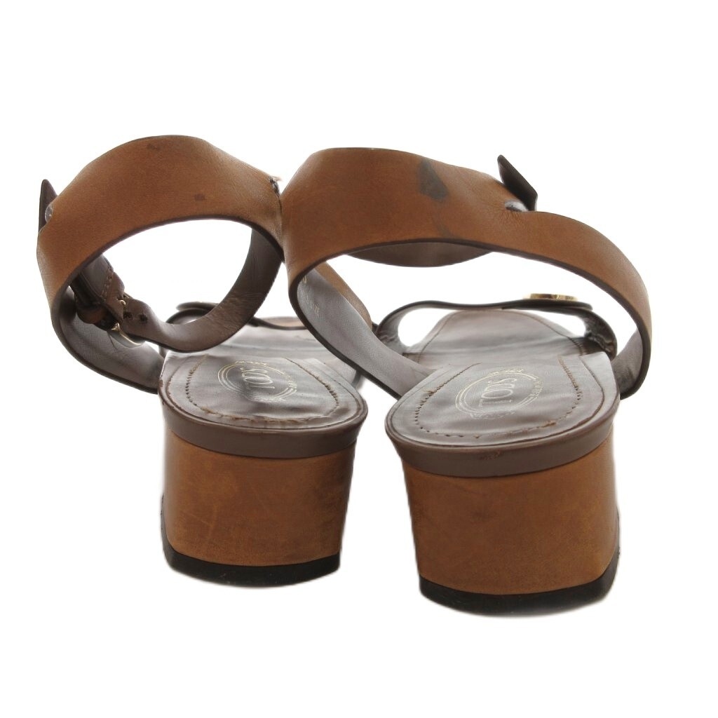 トッズ TOD'S サンダル レザー 金ボタン 38 茶 ブラウン ローヒール ゴールドカラー 金色 /FF レディース