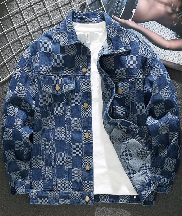 大人気新品レトロ デニムジャケット ゆったり メンズ 格子縞 カラーマッチング Gジャン ワークジャケット春秋服 ジージャン L-XLサイズ選ぶ