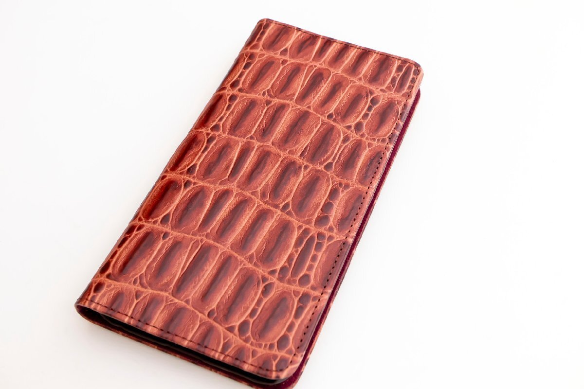 訳あり iPhone6Plus/6sPlus 高級 手帳型 イタリア産 本革 ケース クロコ ブラウン モーダマニア modamania