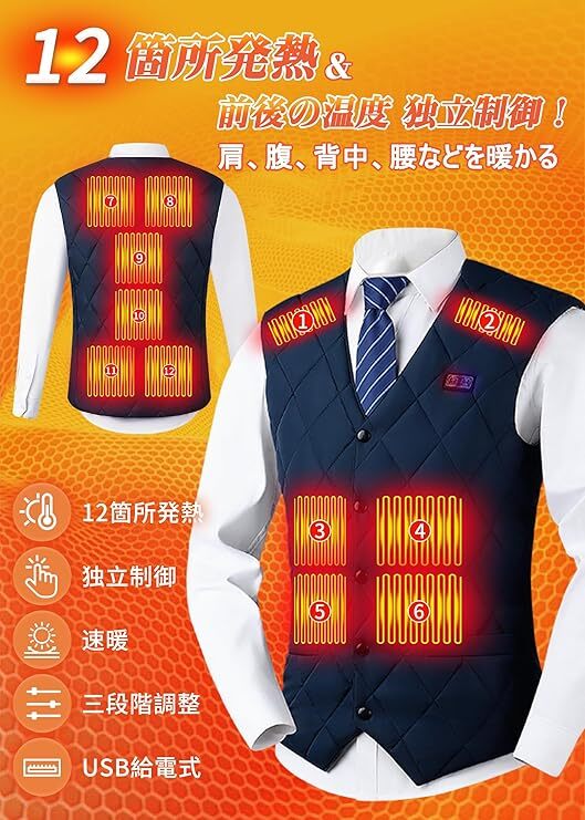 寒い季節にぴったりな12箇所発熱の電熱ベスト。