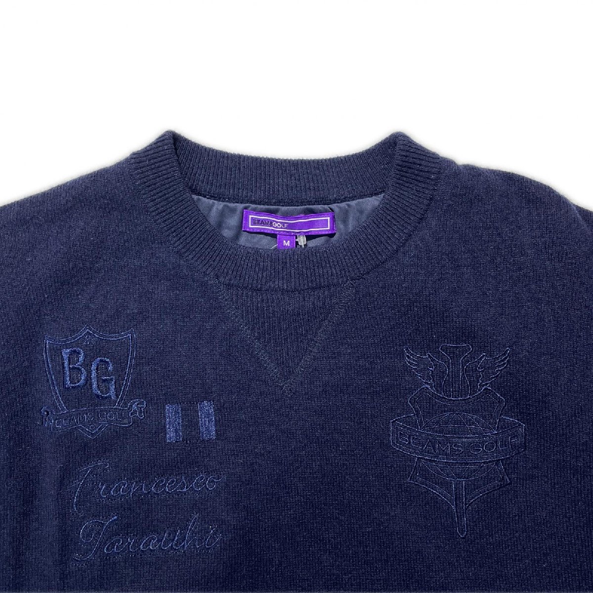 coco 中古 ビームスゴルフ メンズ セーター M 紺 ネイビー 長袖 クルーネック カシミヤ混 裏地付き レターパックプラス発送可 101046