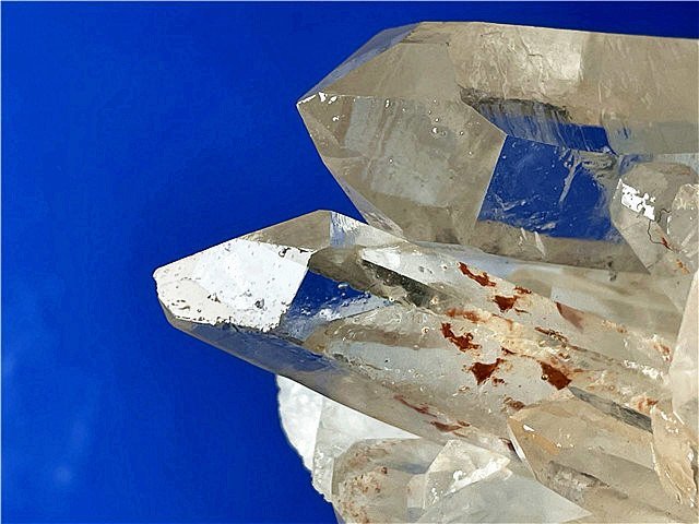 【クリスタルクォーツ(白水晶)】 無色透明の水晶。世界中で最も知られ、その効果は万能とされ、水晶といわると一般にイメージするベーシックな水晶です。その透きとおった姿を見ているだけで、すがすがしい気持ちにさせてくれそうです。 あらゆる水晶の中でも基本となりますので、そのパワーは強力かつオールマイティとされています。