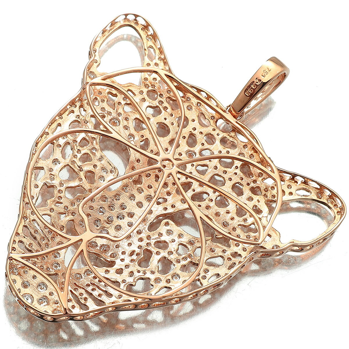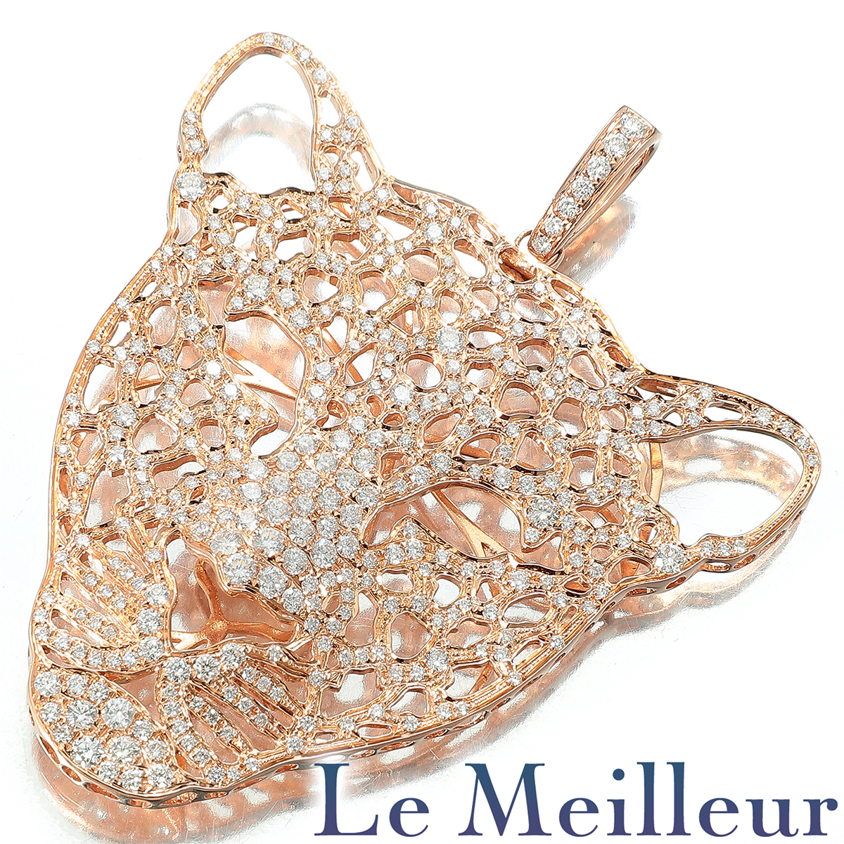 2.93カラットものダイヤを敷き詰めた存在感のある豹モチーフペンダントトップです。お手持ちのチェーンを付ければ、人目を惹くネックレスになることでしょう。
