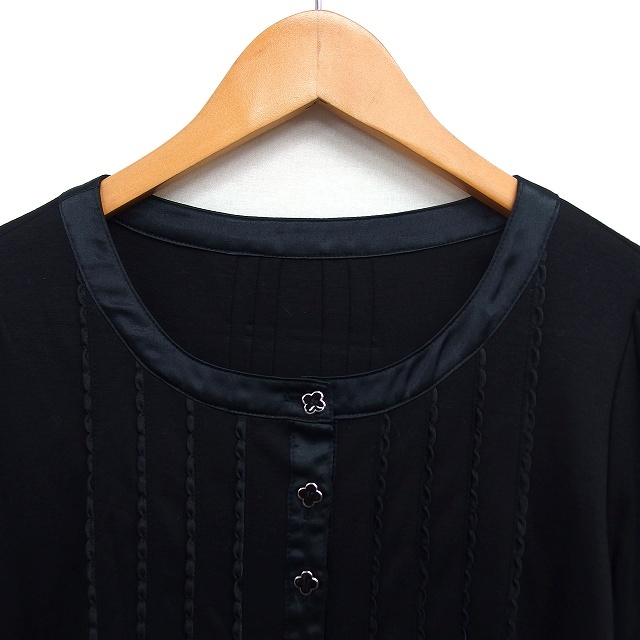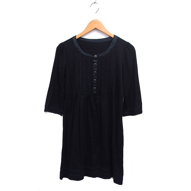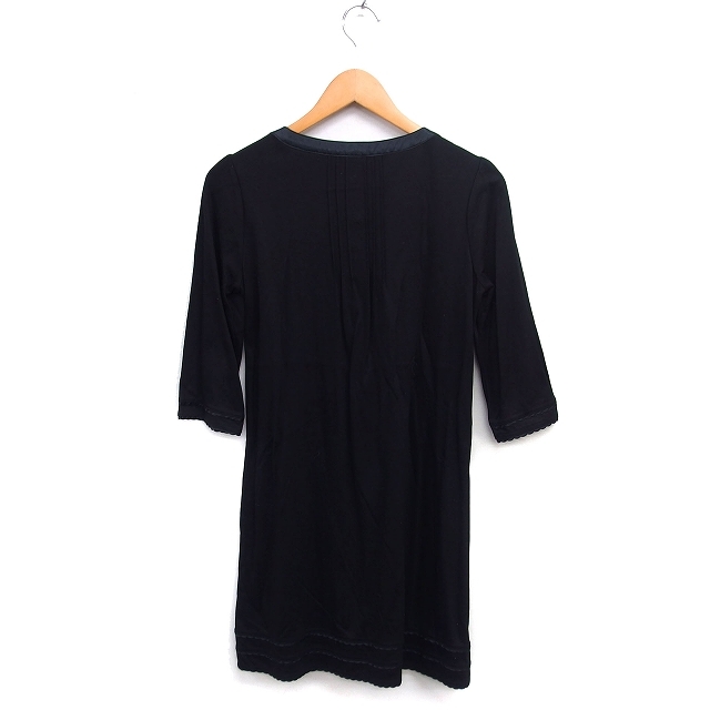 クレージュ courreges ピンタック ワンピース フレア ミニ フリル ハーフボタン 七分袖 38 黒 ブラック /NT21 レディース