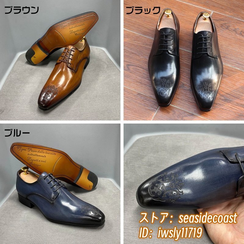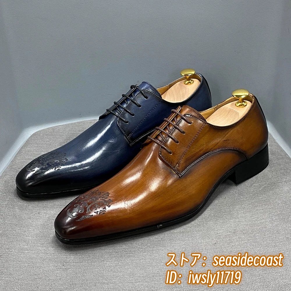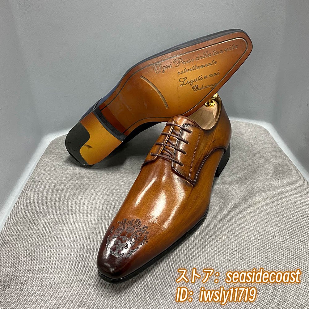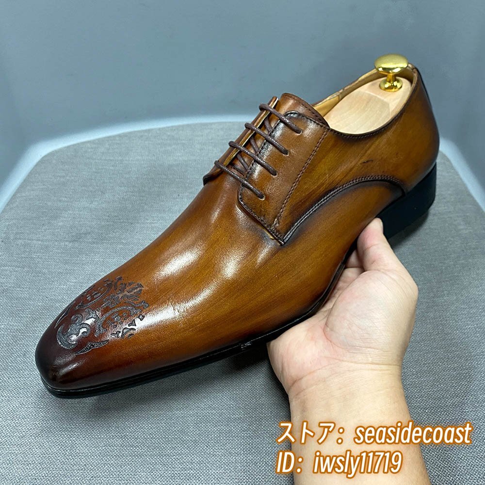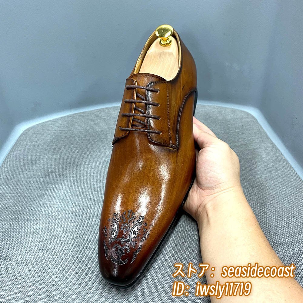 最高級★定価10万 ビジネスシューズ 本革 メンズ 職人手塗仕上げ 超希少 レザーシューズ 彫り 牛革紳士靴 フォーマル 革靴 ブラウン 26.5cm