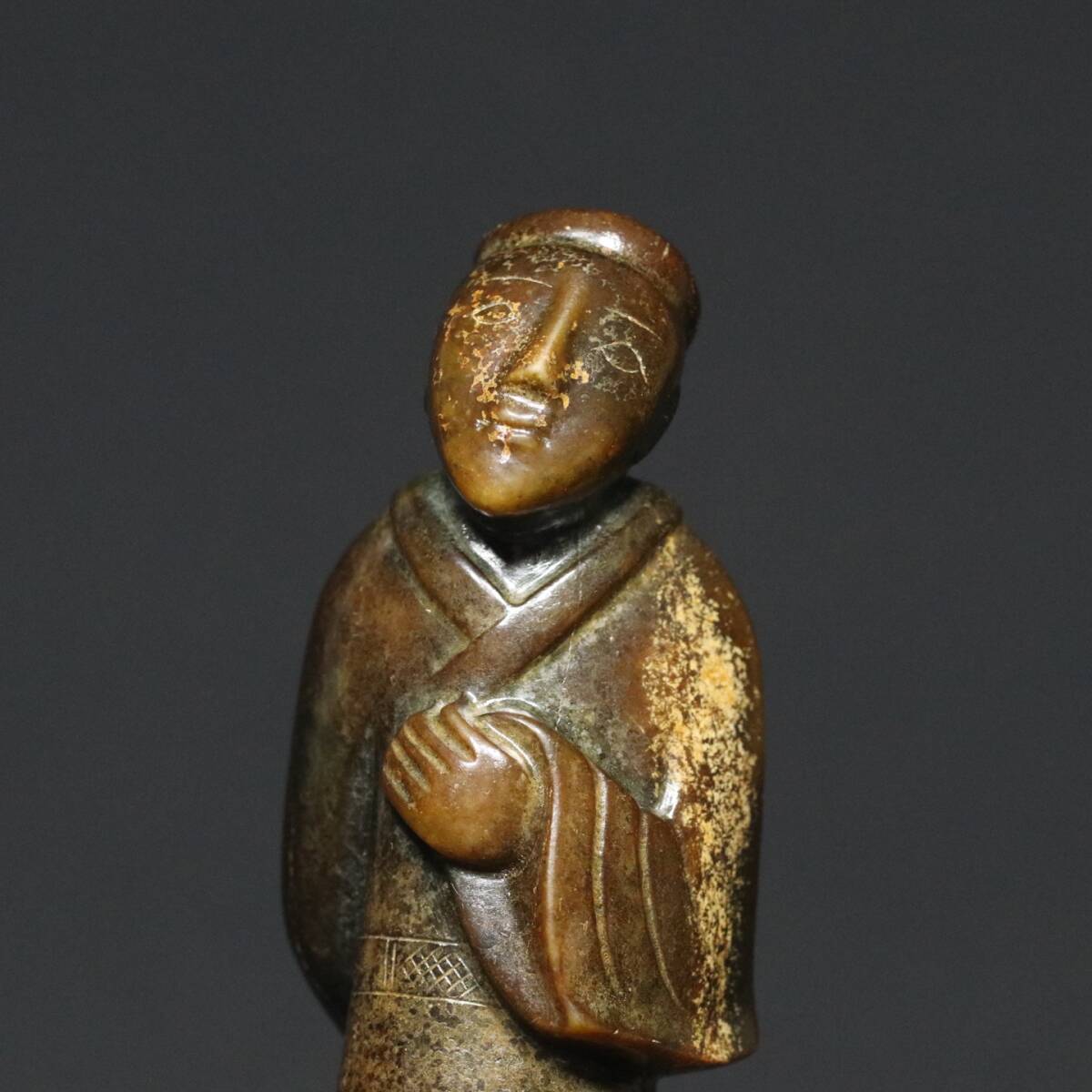 中国骨董品 和田玉『漢代の老和田玉【玉人の人物】の置物です』 彫刻工芸品 伝世家珍 風水開運 精美彫 收藏品 置物 | ||||||