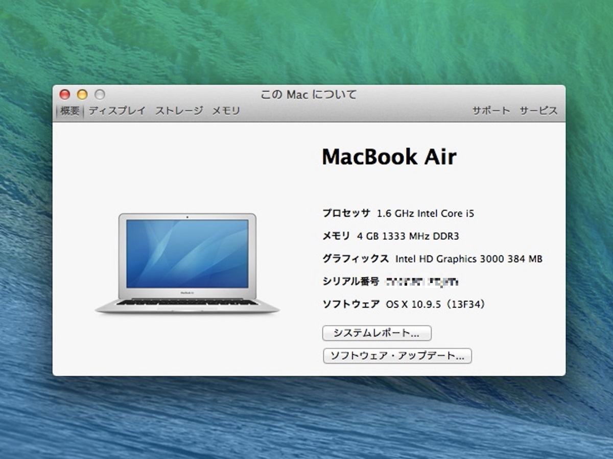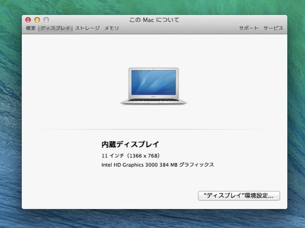 | Apple MacBook Air A1370 (11-inch,Mid2011)/Core i5 1.6GHz/4GBメモリ/SSD128GB/OS X Mavericks 10.9.5/バッテリーNG #1017 | ||