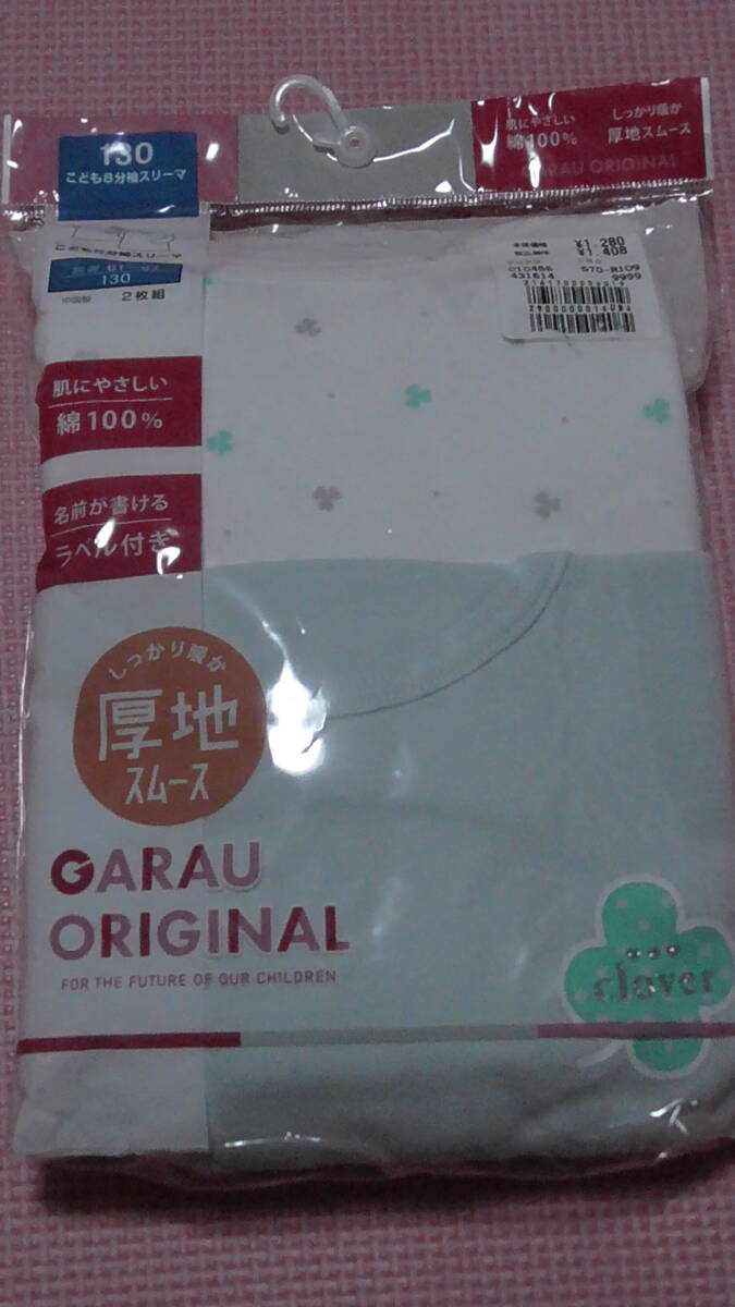 新品 130 2枚組 長袖シャツ 厚地 綿100% クローバー柄 緑 四つ葉 小学生 女の子 下着 ガロー インナー 肌着2枚セット 冬物 120~ 送料無料