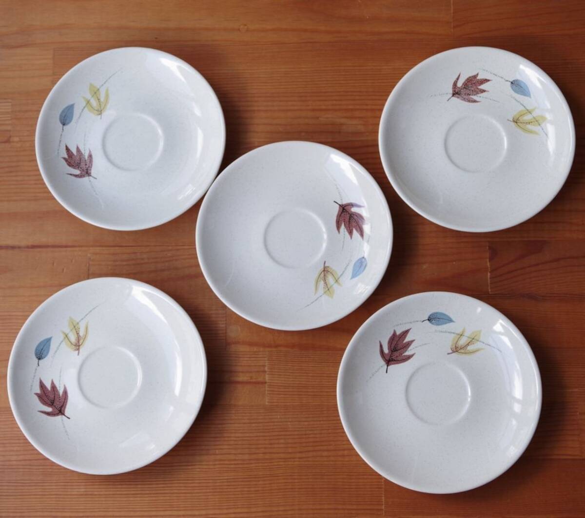 フランシスカン 秋 落ち葉 リーフ柄 ティーカップ&ソーサー アメリカ製 陶器 #230909-1~5 Franciscan ヴィンテージ レトロ 食器 コーヒー