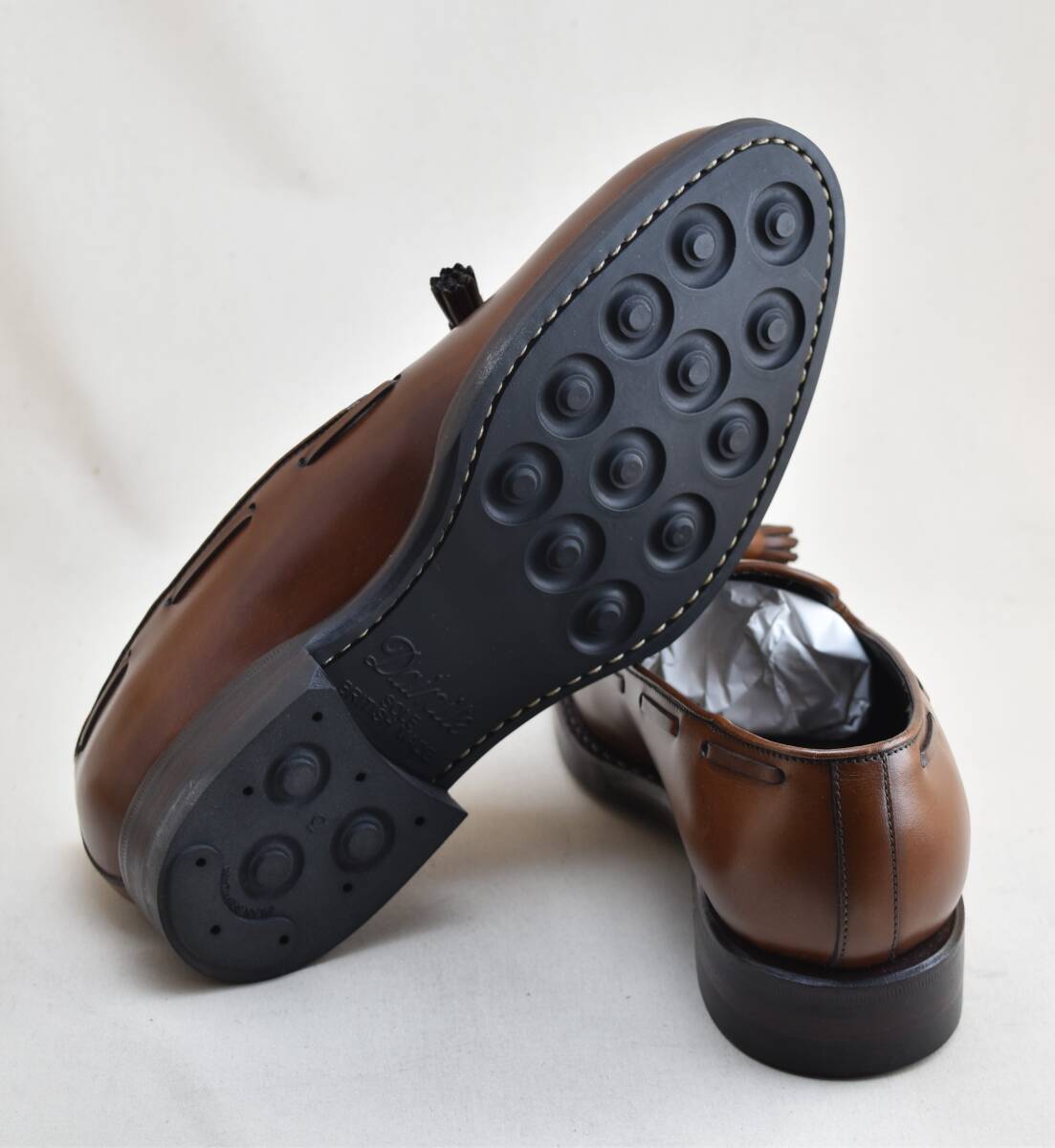 底材にはグリップ力と耐摩耗性を兼ね備えながらドレッシーな雰囲気を持つ、イギリス製のダイナイトソールを