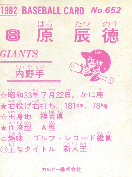 カルビー1982 原辰徳(巨人) レギュラーカード #652