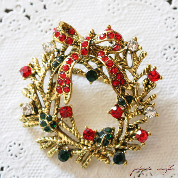 クリスマス リース ブローチ ラインストーン ピンバッジ パーティー ディスプレイ パーティー 衣装 クリスマスリース