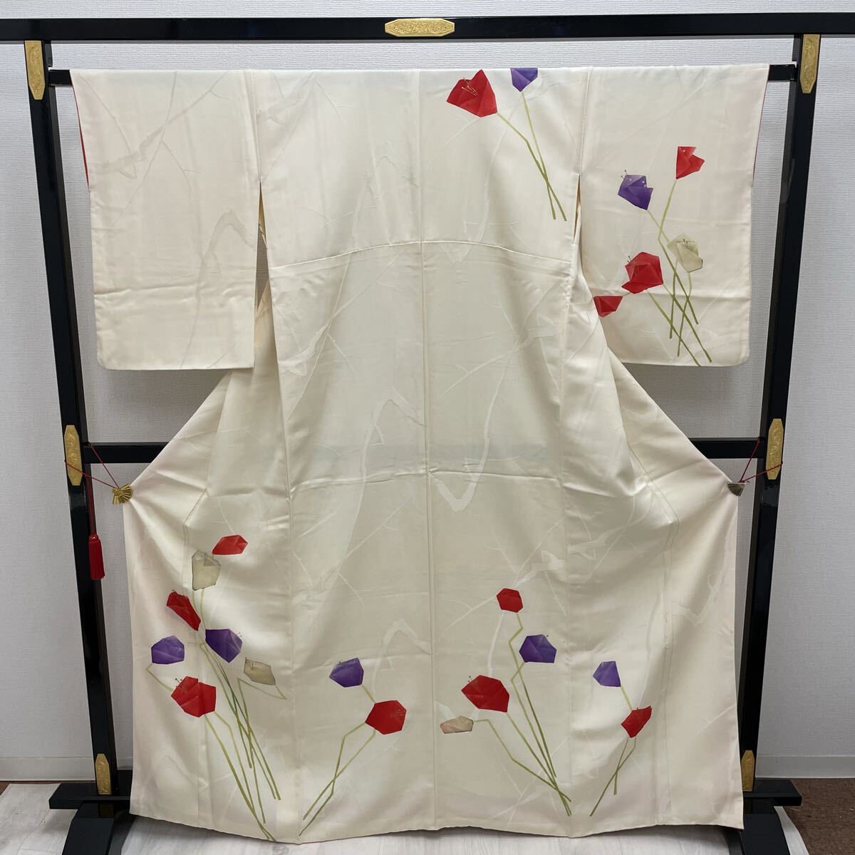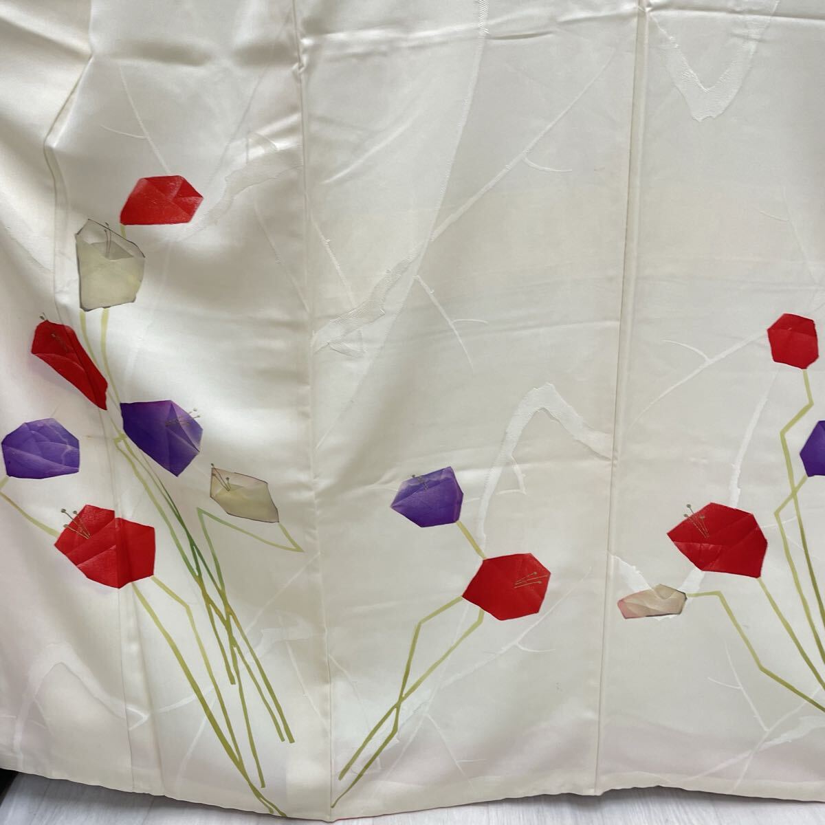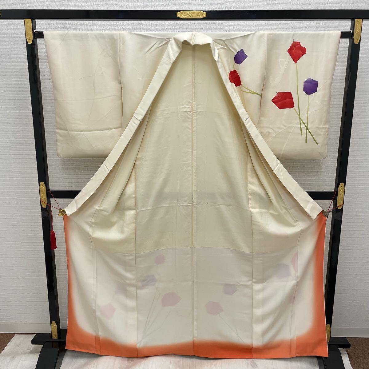 付下げ 上品な花模様 着物 正絹 バチ衿 W-4931