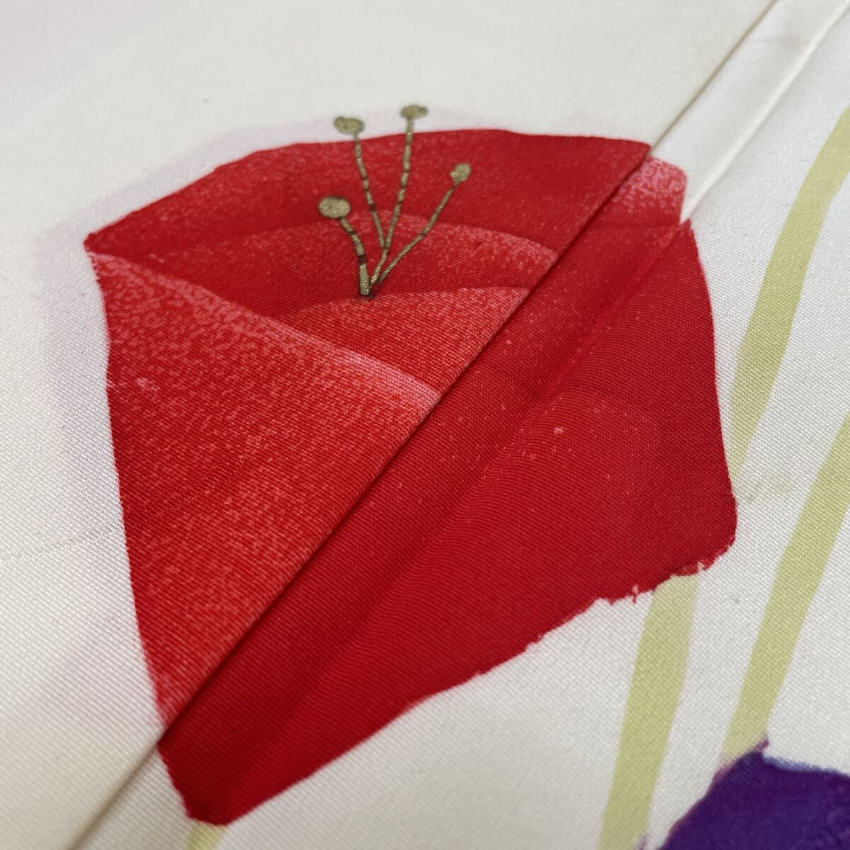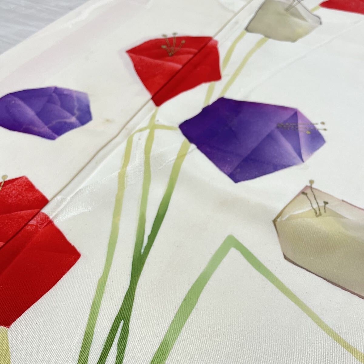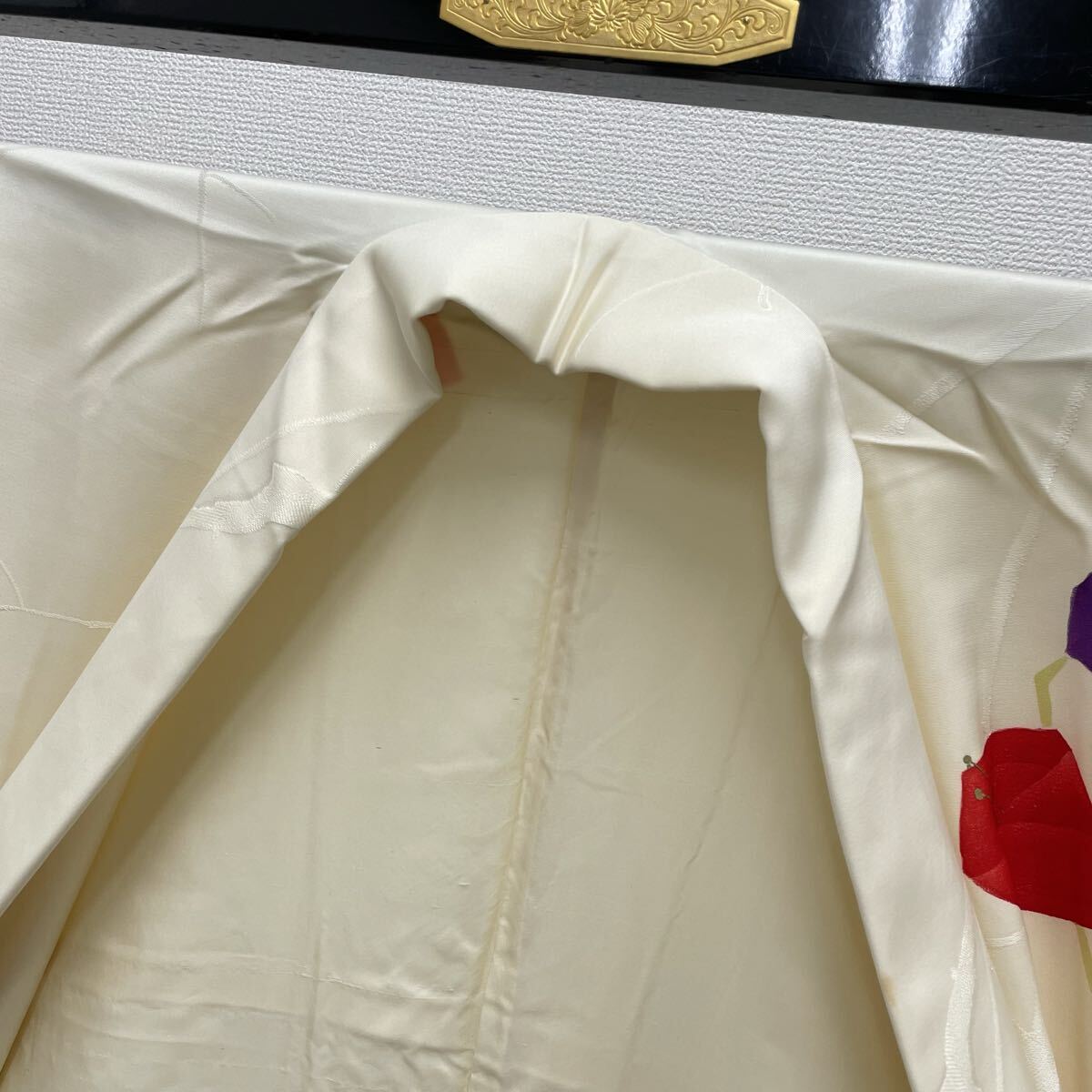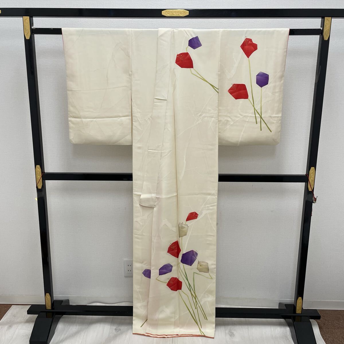 付下げ 上品な花模様 着物 正絹 バチ衿 W-4931