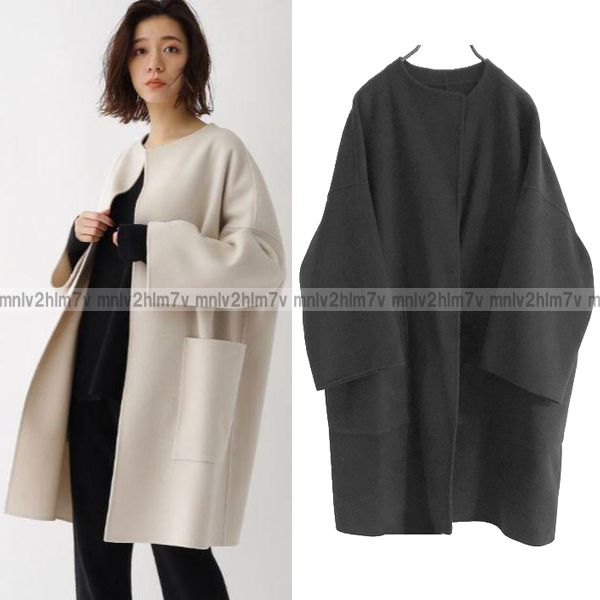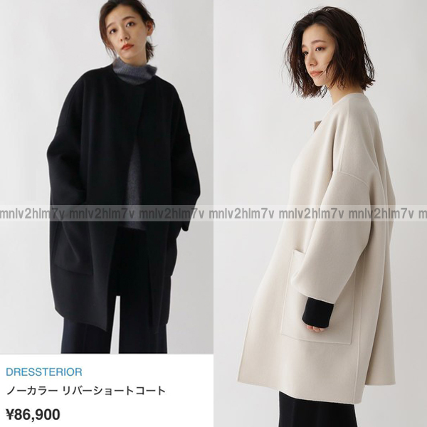 【DRESSTERIOR ドレステリア】ノーカラーリバーショートコート オーバーサイズ ウールコート リバーコート ハーフコート
