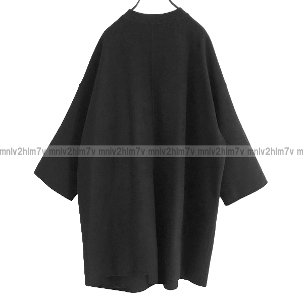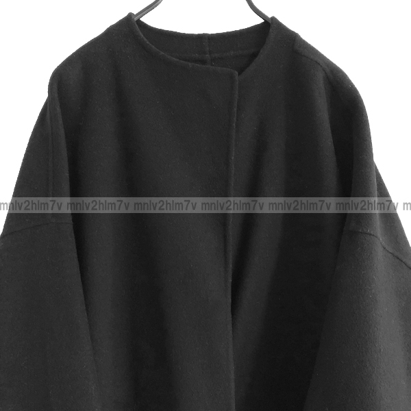 定8.7万【ドレステリア DRESSTERIOR】ノーカラーリバーショートコート オーバーサイズ ウールコート リバーコート ハーフコート ブラック