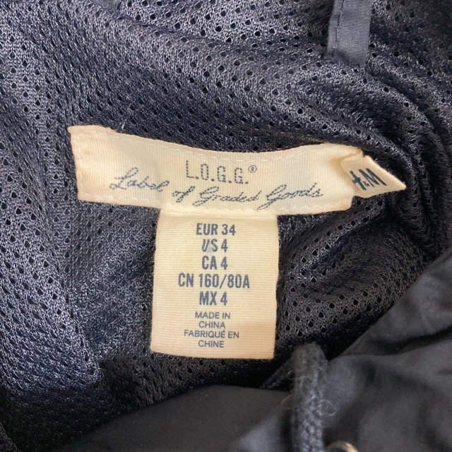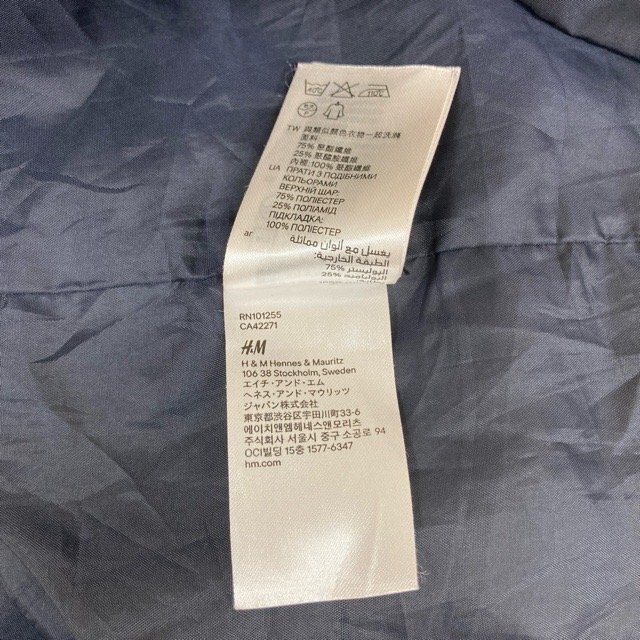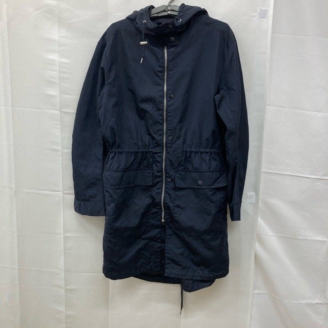 B368 エイチアンドエム 34 ユーロ古着 ポリエステル ロング パーカー ネイビー H&M レディース