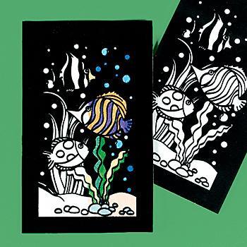 熱帯魚が白抜きになった色塗りシートです。黒い部分はビロードのような加工になっていて