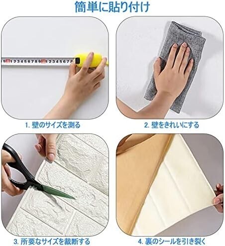 【商品特性・自由に裁断】クッションタイプのブリック壁紙です。シールタイプなので施工も簡単。無塗装し、無ツールし、自己粘着なので、簡単に綺麗に壁に貼ってはがせます。また、素材の特性により、ハサミ一つで気軽にアレンジ、お部屋の隅や特殊的な壁にも簡単に合わせることができ、簡単に部屋の模様替えができます。人に頼まず、DIYの趣を味わいましょう。