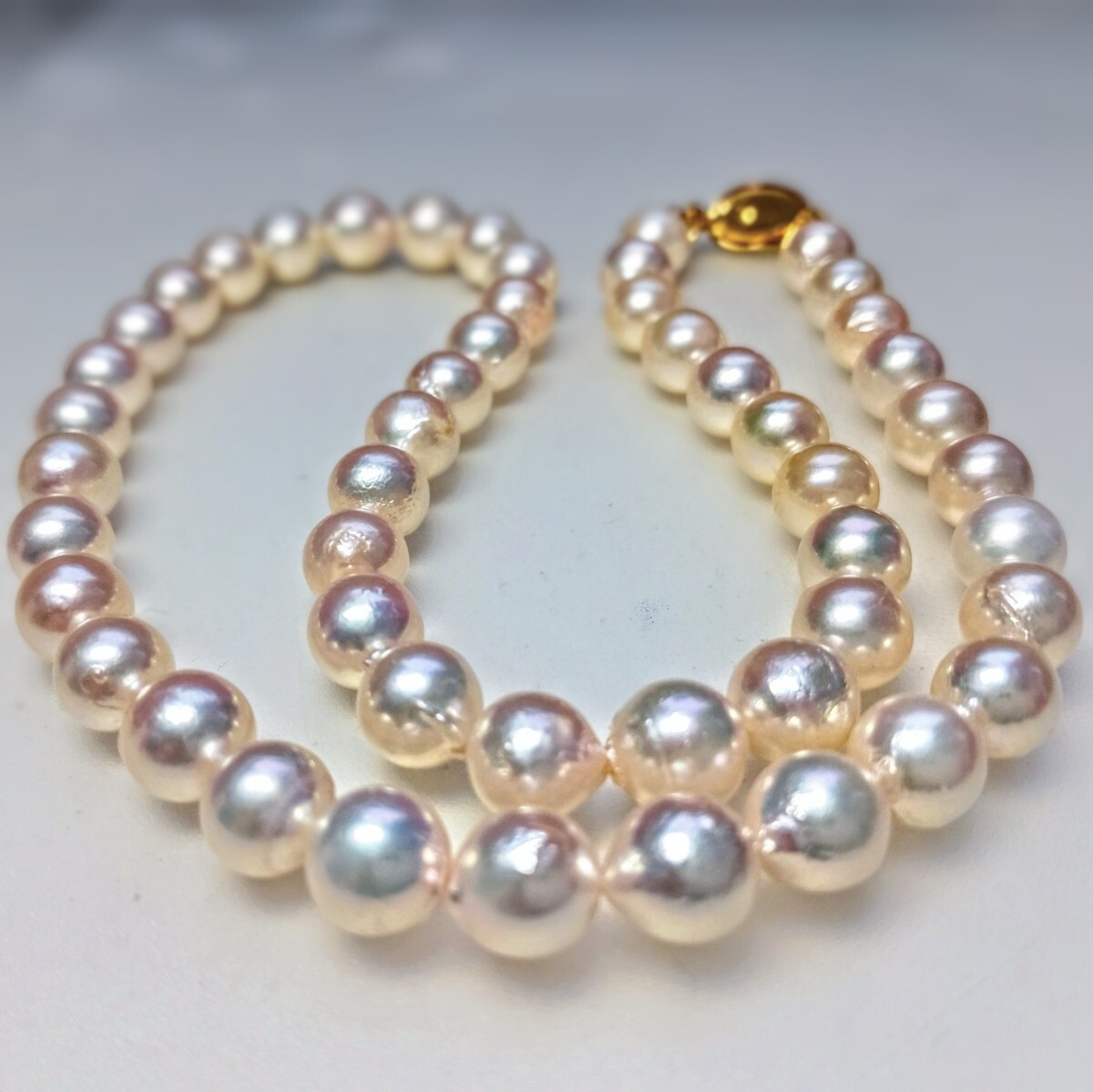 オーロラ花珠8.2mm★アコヤ本真珠ネックレス