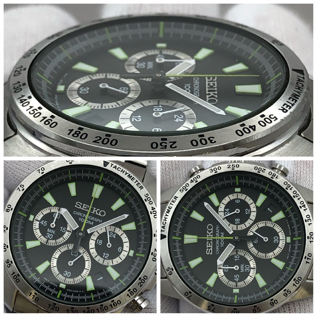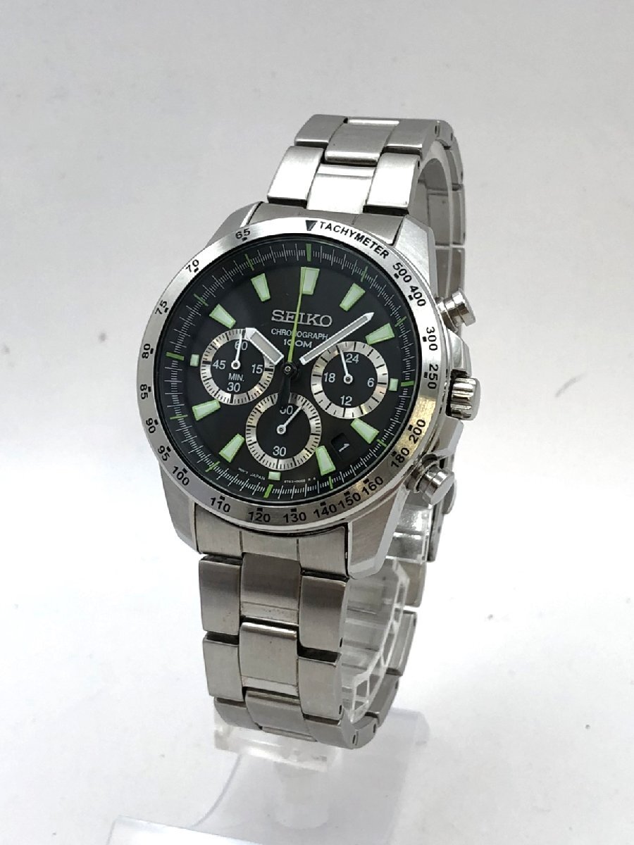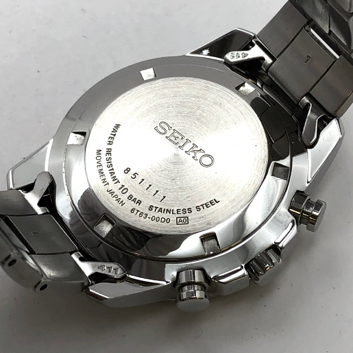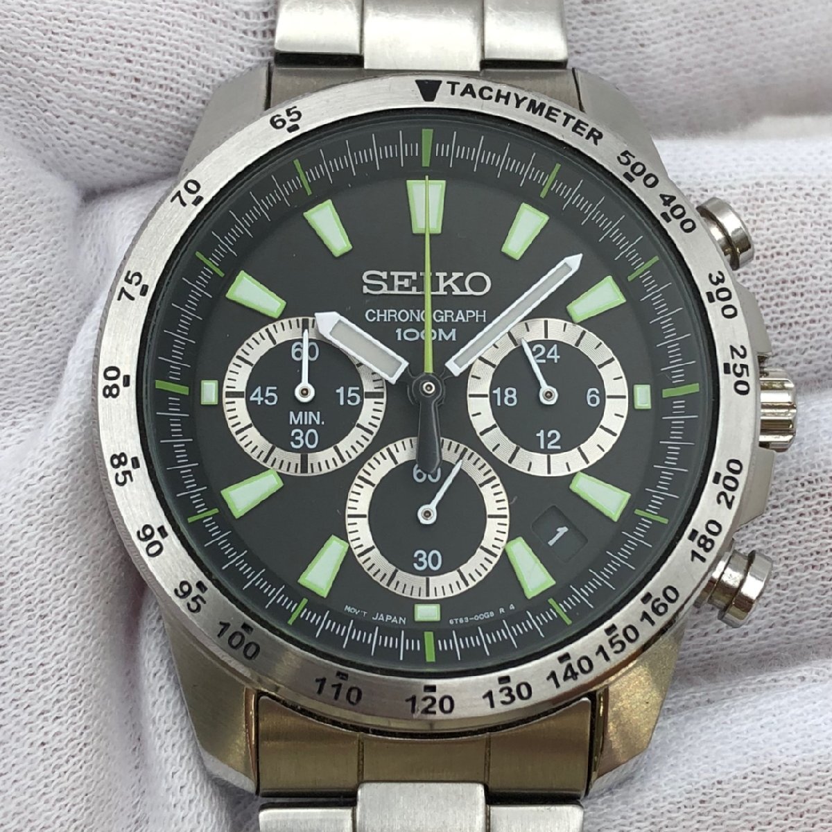 1円~/SEIKO/セイコー/クロノグラフ/6T63-00D0/デイト/黒文字盤/シルバーカラー/ラウンド/100M/クォーツ/メンズ腕時計/ジャンク/H038