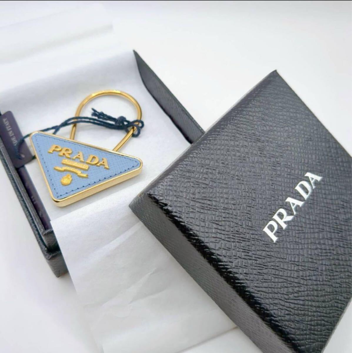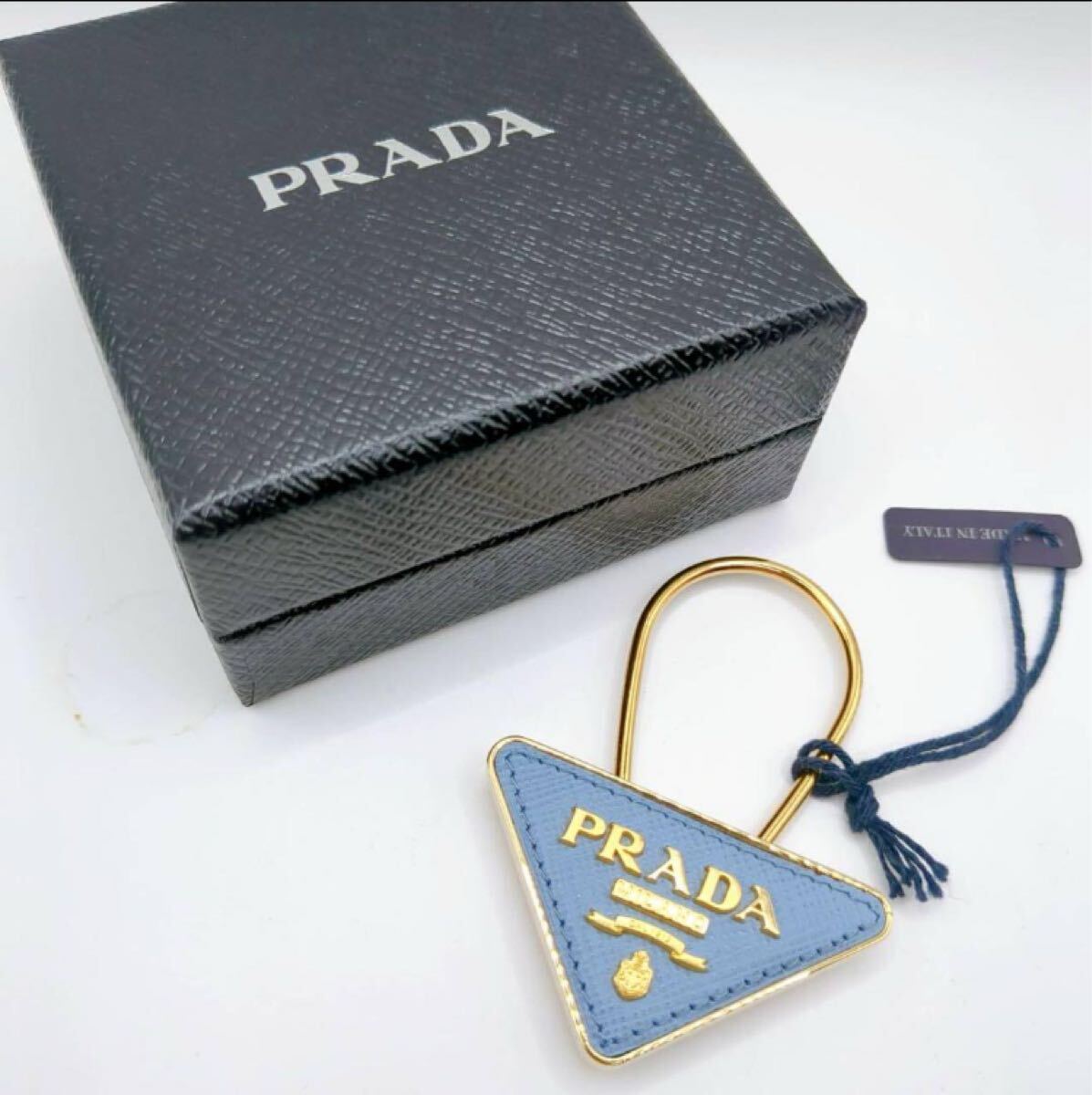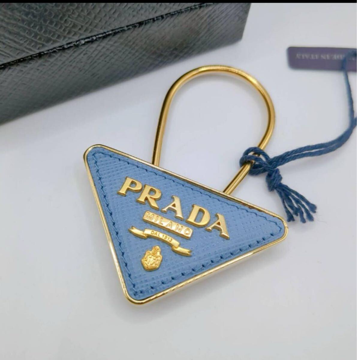 ・PRADA トライアングル キーホルダー キーリング チャームールド 三角 サフィアーノ レザー