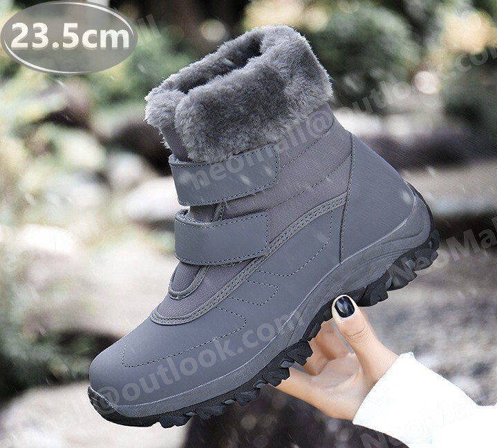 レディース スノーシューズ 【971】 グレー 23.5cm ムートンブーツ スニーカー ウィンターブーツ 裏起毛 防水 防寒 防滑 冬用靴 綿靴