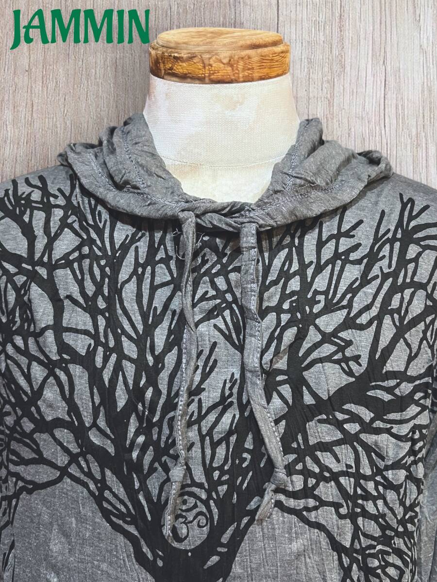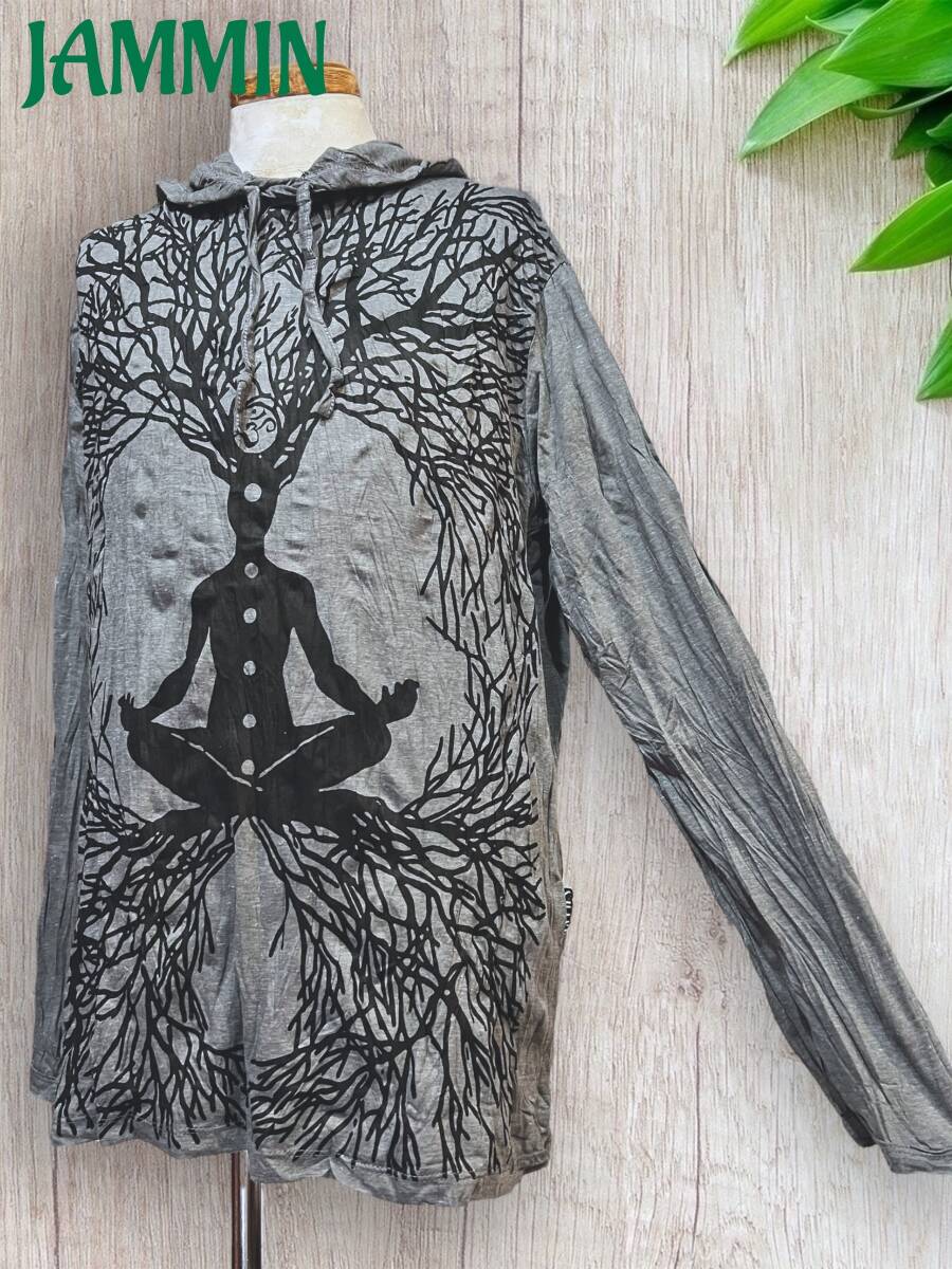 アジアン/エスニック/サイケ/ヒッピー/個性派/ロンT/長袖/Tシャツ/ロングスリーブTシャツ/フード付き/長袖/Lサイズ/チャクラ/瞑想/ヨガ
