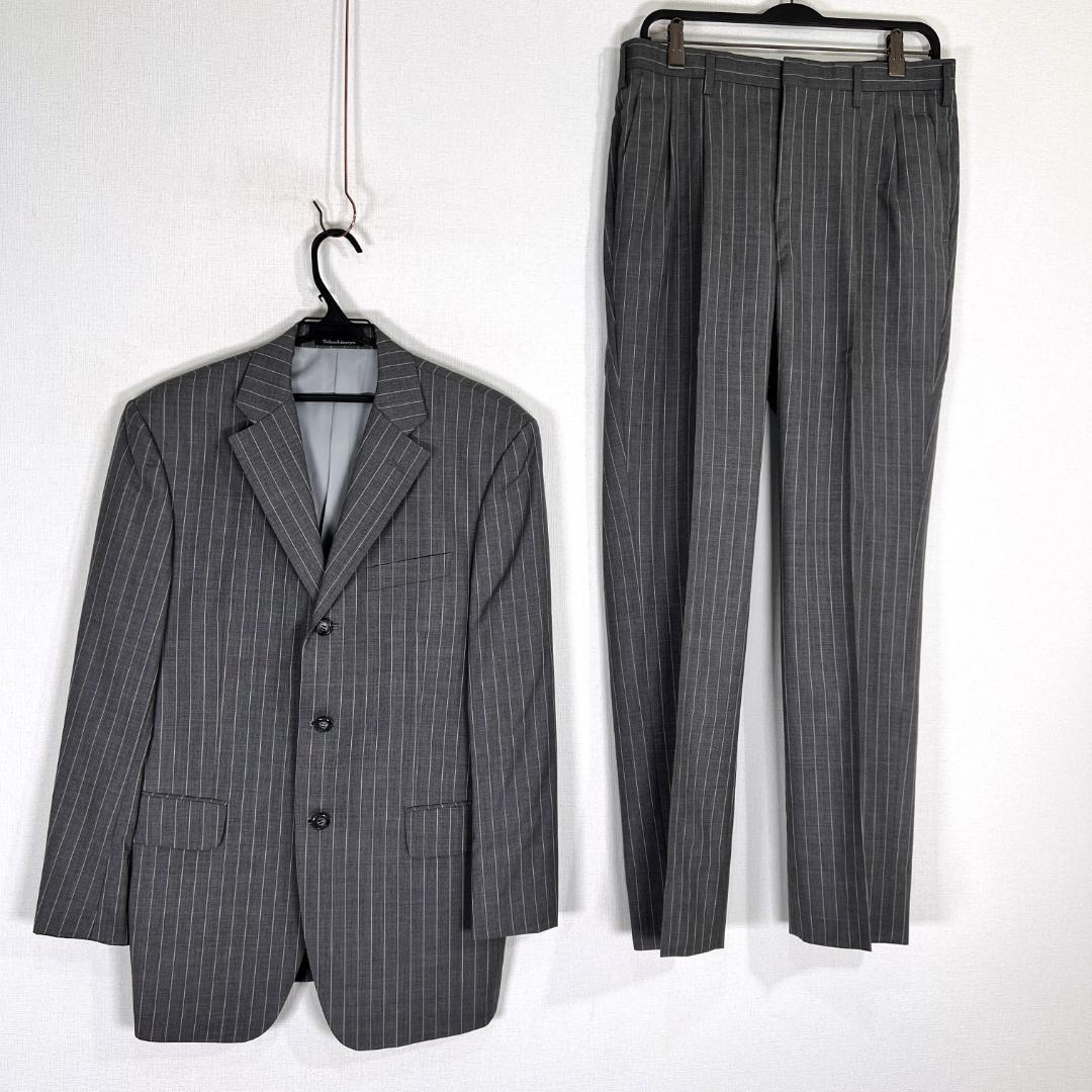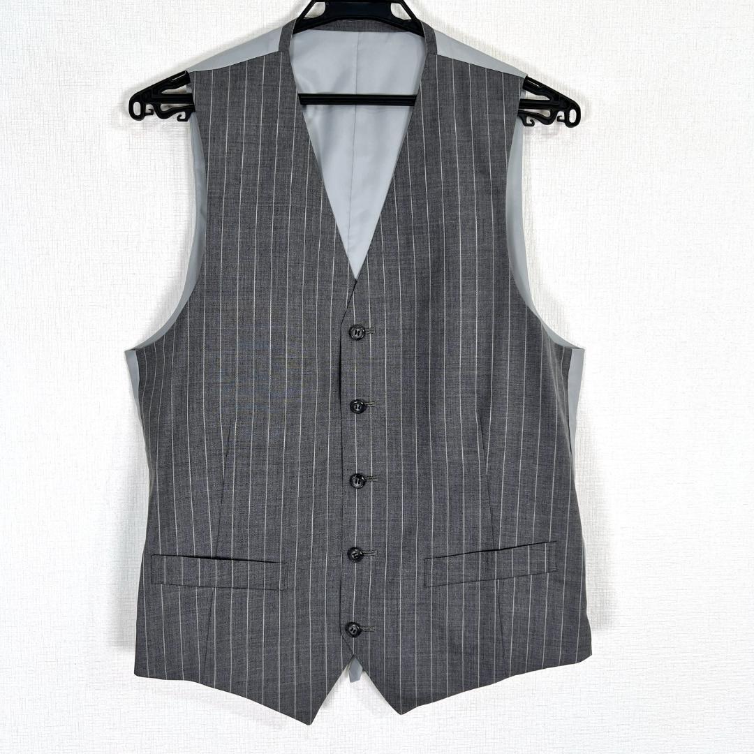 【高島屋】グレー ストライプ セットアップ ビジネススーツ ジャケット×ベスト×パンツ 3点セット 紳士服 男性用 メンズ B100【a042】