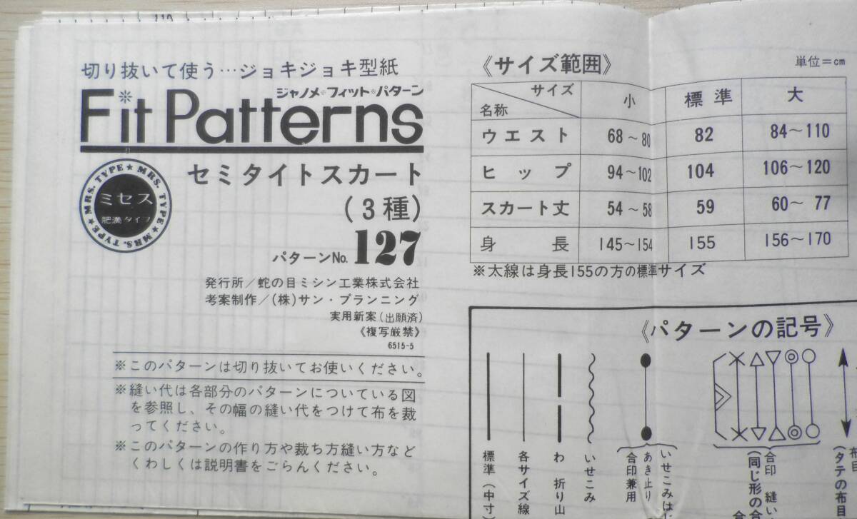 ジャノメフィットパターン パターンNo.127 セミタイトスカート3種 a14