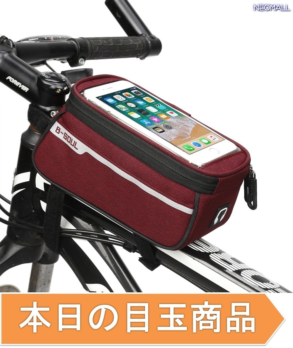 本日の目玉☆ トップチューブバッグ レッド スマホ ケース タッチパネル ポーチ 5.7インチ フロント バック 自転車 パーツ 【apa-376】