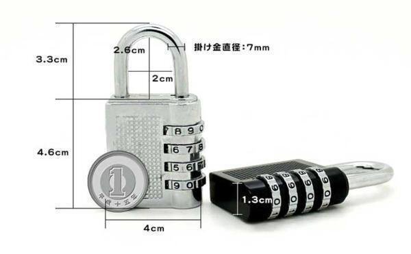 ◆ダイヤル式ロック 可変式 4桁 南京錠 防犯用 海外旅行 荷物スーツケース LOCK41【シルバー】