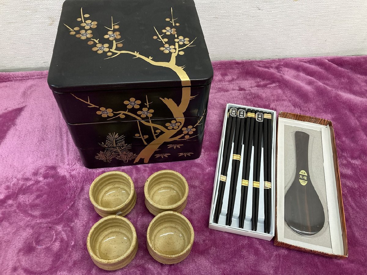 ★ AT 和食器 おせち 運動会 弁当箱 お重 重箱 3段 箸 はし おちょこ まとめ売り 保管品 未使用